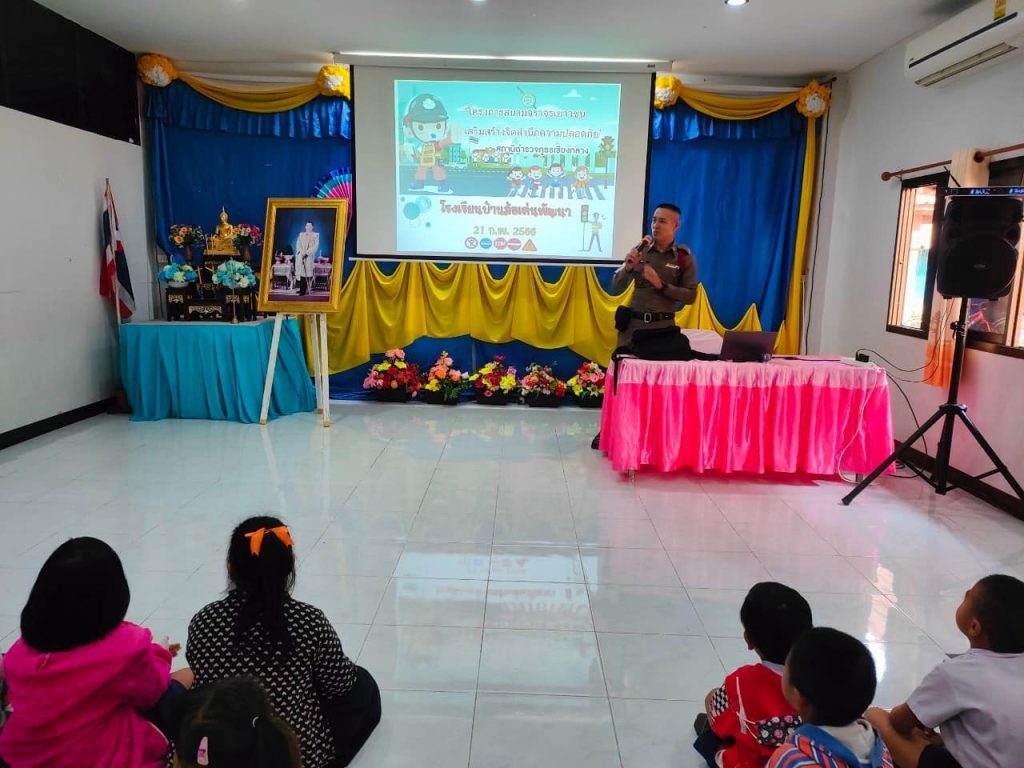 โดยการอำนวยการของ พ.ต.อ.สิทธิโชค ลือโลก ผกก.สภ.เชียงกลาง ,พ.ต.ท.สรรเสริญ ฉันทะ รองผกก.ป.ฯ,พ.ต.ท.ประชา คงคารักษ์ สวป.ฯ มอบหมายให้เจ้าหน้าที่ตำรวจโดยมี ร.ต.ต.อนุชิต ไชยเชษฐ์ รอง สว.(ป.)ฯ,ด.ต.สมดุลย์ คำวงค์ ผบ.หมู่(ป.)ครูตำรวจ D.A.R.E.,ส.ต.อ.กิตติธัช ปิจวงศ์ ผบ.หมู่(ป.),ส.ต.ต.ณัฐวัฑณ์ สุราช ผบ.หมู่(ป.) ชุดปฏิบัติการชุมชนและมวลชนสัมพันธ์ ดำเนิน“โครงการสนามจราจรเยาวชน เสริมสร้างจิตสำนึกความปลอดภัย” ประจำปี 2566” ณ โรงเรียนบ้านส้อเด่นพัฒนา ต.เปือ เพื่อหล่อหลอมให้เยาวชนเติบโตเป็นผู้ใหญ่ที่มีจิตสำนึกความปลอดภัยและวินัยจราจร เพื่อให้ความรู้ ความเข้าใจเกี่ยวกับกฎจราจรการใช้รถใช้ถนนที่ถูกต้อง ปลอดภัยและเป็นแบบอย่างที่ดีนำไปสู่การป้องกันและลดปัญหาอุบัติเหตุทางถนนอย่างยั่งยืน ปลูกฝังจิตสำนึกด้านความปลอดภัย สร้างวินัยจราจรให้กับนักเรียนระดับประถมในพื้นที่อำเภอเชียงกลาง