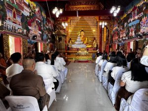 - พิธียกฉัตรถวายพระพุทธประธานในอุโบสถ