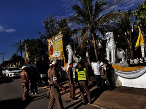 สภ.เชียงกลาง พร้อมช้าราชการตำรวจ สภ.เชียงกลาง ร่วมพิธียกฉัตรฯ ถวายความปลอดภัยและอำนวยความสะดวกการจราจรพิธีทางพระพุทธศาสนาอันสำคัญ ในพื้นที่อำเภอเชียงกลาง จังหวัดน่าน
