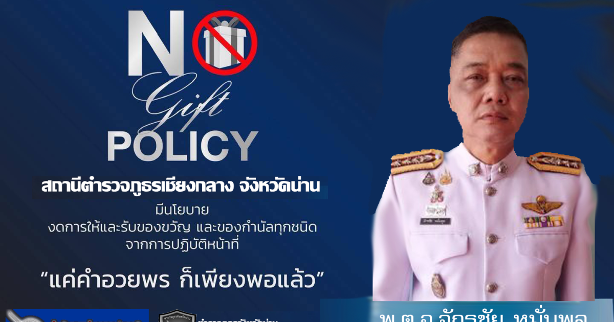 แสดงภาพอินโฟกราฟฟิกนโยบายไม่รับของขวัญและของกำนัลทุกชนิด(์No Gift Policy)จากการปฏิบัติหน้าที่ทั้งภาษาไทยและภาษษอังกฤษ แสดงไว้บนหน้าแรกของเว็บไซต์ของหน่วยงาน และเผยแพร่ไว้ ณ จุดบริการประชาชน One Stop Serviec