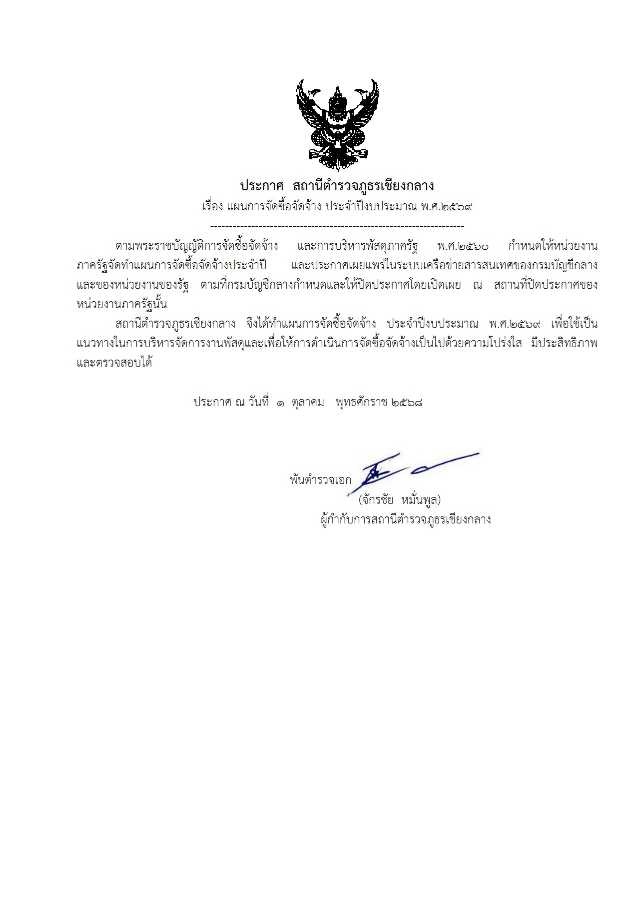 ประกาศ การจัดซื้อจัดจ้าง ประจำเดือน มกราคม 2568ของ สภ.เชียงกลาง