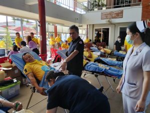 สภ.เชียงกลาง วันที่ 10 กุมภาพันธ์ 2568 เวลา 09.00 น. โดยการอำนวยการของ พ.ต.อ. สุทธิพงศ์ จงวัฒนา ผกก.สภ.เชียงกลาง มอบหมายให้ ร.ต.ท.จิรัส ชัยรัตน์คำโรจน์ รอง สว.(สส.)สภ.เชียงกลาง พร้อมข้าราชการตำรวจในสังกัด จำนวน 8 นาย ร่วมบริจาคโลหิต”กิจกรรมจิตอาสา” ของเหล่ากาชาด จว.น่าน ร่วมกับตำรวจภูธรจังหวัดน่าน, รพ.น่าน เพื่อสร้างจิตสำนึกของการร่วมกันทำความดีด้วยหัวใจ มีความเป็นจิตอาสา ด้วยการร่วมบริจาคโลหิตช่วยชีวิตเพื่อนมนุษย์ และสามารถสนับสนุนโลหิตให้แก่ธนาคารเลือดให้มีเลือดสำรองเพื่อนำไปรักษาผู้ป่วยต่อไป ณ ลานภัทรพงศ์สินธุ์ ภ.จว.น่าน