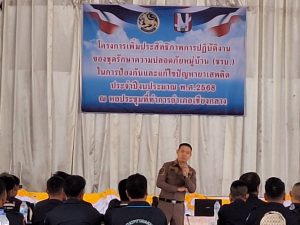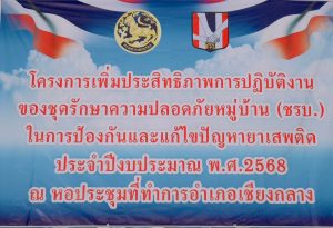 🚩สภ.เชียงกลาง จว.น่าน วันที่ 24 กุมภาพันธ์ 2568 เวลา 13.00 น.-16.00 น. ♦สภ.เชียงกลาง โดยการอำนวยการของ พ.ต.อ.สุทธิพงศ์ จงวัฒนา ผกก.สภ.เชียงกลาง,พ.ต.ท.สุวิวัฒณ์ สัญญา รอง ผกก.ป.ฯ,พ.ต.ท.ประชา คงคารักษ์สวป.ฯ มอบหมายให้ ร.ต.อ.นิติปกรณ์ บริคุต รอง สวป.ฯ ,ร.ต.ต.พงศธร พรมมินทร์,ด.ต.สมดุลย์ คำวงค์,ส.ต.ต.ธวัชชัย ใจคาร ชุดชุมชนและมวลชนสัมพันธ์ฯ ปฏิบัติหน้าที่วิทยากรอบรมโครงการเพิ่มประสิทธิภาพการปฏิบัติงานของชุดรักษาความปลอดภัยหมู่บ้าน (ชรบ) ในการป้องกันและแก้ไขปัญหายาเสพติด ประจำปี 2568