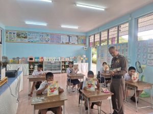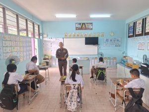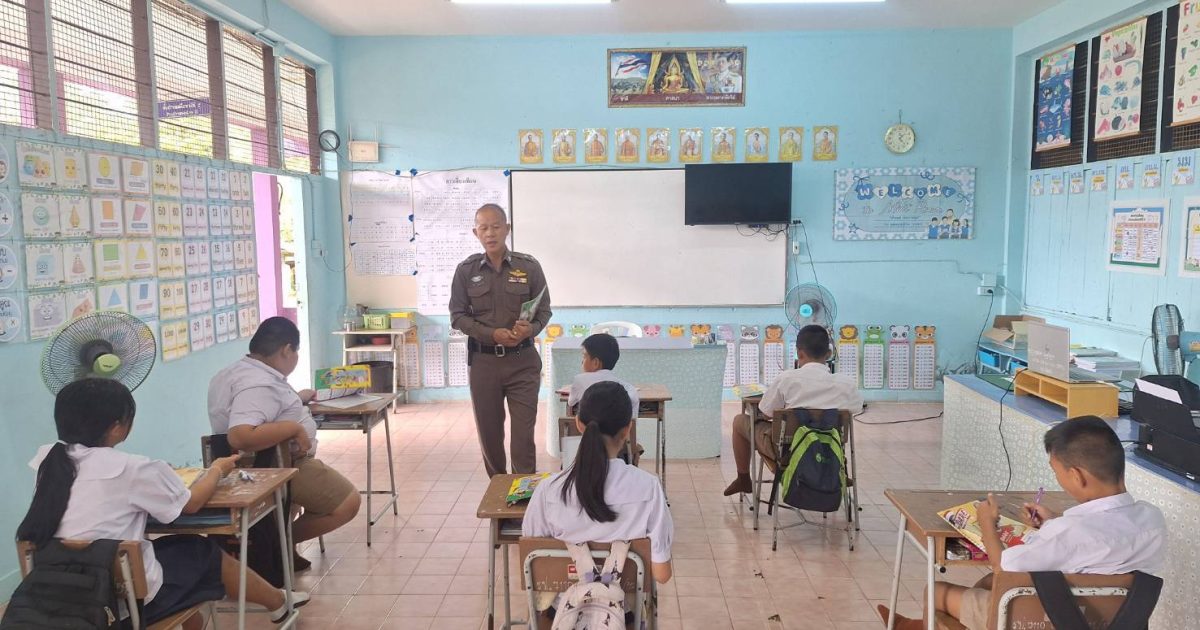 สภ.เชียงกลาง จว.น่าน วันอังคารที่ 18 พฤศจิกายน 2568 เวลา13.30น. -14.30น. เรียนผู้บังคับบัญชา โดยการอำนวยการของ พ.ต.อ.จักรชัย หมั่นพูล ผกก.สภ.เชียงกลาง พ.ต.ท. สุวิวัฒณ์ สัญญา รองผกก.ป สภ.เชียงกลาง พ.ต.ท. ประชา คงคารักษ์ สวป.สภ.เชียงกลาง มอบหมายให้ ร.ต.ท.พงศธร พรมมินทร์ รอง สว.(ป.)สภ.เชียงกลาง ครูตำรวจแดร์ ทำการสอนหลักสูตรการศึกษาเพื่อต่อต้านการใช้ยาเสพติดในเด็กนักเรียน (โครงการ D.A.R.E.) ที่ รร.ธาราบรรพต ต.พระธาตุ ได้รับความร่วมมือจาก ผู้อำนวยการโรงเรียน ครูและนักเรียนเป็นอย่างดียิ่ง