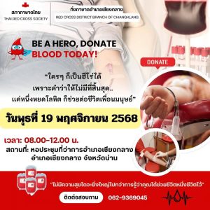 - กิ่งกาชาดอำเภอเชียงกลาง ร่วมกับโรงพยาบาลเชียงกลาง อำเภอเชียงกลาง จัดกิจกรรมร่วมบริจาคโลหิต “จิตอาสาทำความดีด้วยหัวใจ ” โดยรับบริจาคโลหิต ณ หอประชุมที่ว่าการอำเภอเชียงกลาง และมีคุณสร้อยลดา ชวาเขต คณะกรรมการติดตามและตรวจสอบการบริหารงานตำรวจ ( กต.ตร.สภ.เชียงกลาง ) ทั้งนี้มีข้าราชการตำรวจในสังกัดร่วมบริจาคโลหิตในครั้งนี้
