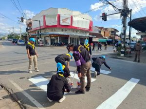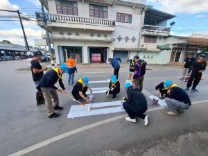 วันที่ 25 ธันวาคม 2568 เวลา 13.00 น. โดยการอำนวยการของ พ.ต.อ.จักรชัย หมั่นพูล ผู้กำกับการสถานีตำรวจภูธรเชียงกลาง มอบหมายให้ พ.ต.ท.ประชา คงคารักษ์ รอง ผกก.ป.สภ.เชียงกลาง พ.ต.ท.จรัส ธัญญะ สว.อก.ฯ, ร.ต.อ.หญิงนิมล ศิริรัตน์ รอง สว.อก.,ร.ต.อ.จิรัส ชัยรัตนคำโรจน์, ร.ต.อ.เอนก ยาวิไชย รอง สว.(ป.)/หน.จราจร พร้อมด้วยข้าราชการตำรวจจิตอาสา บูรณาการร่วมกับเจ้าหน้าที่ เทศบาลตำบลเชียงกลาง ดำเนินกิจกรรม ทาสีตีเส้นทางม้าลายที่มีสภาพเลอะเลือน บริเวณ